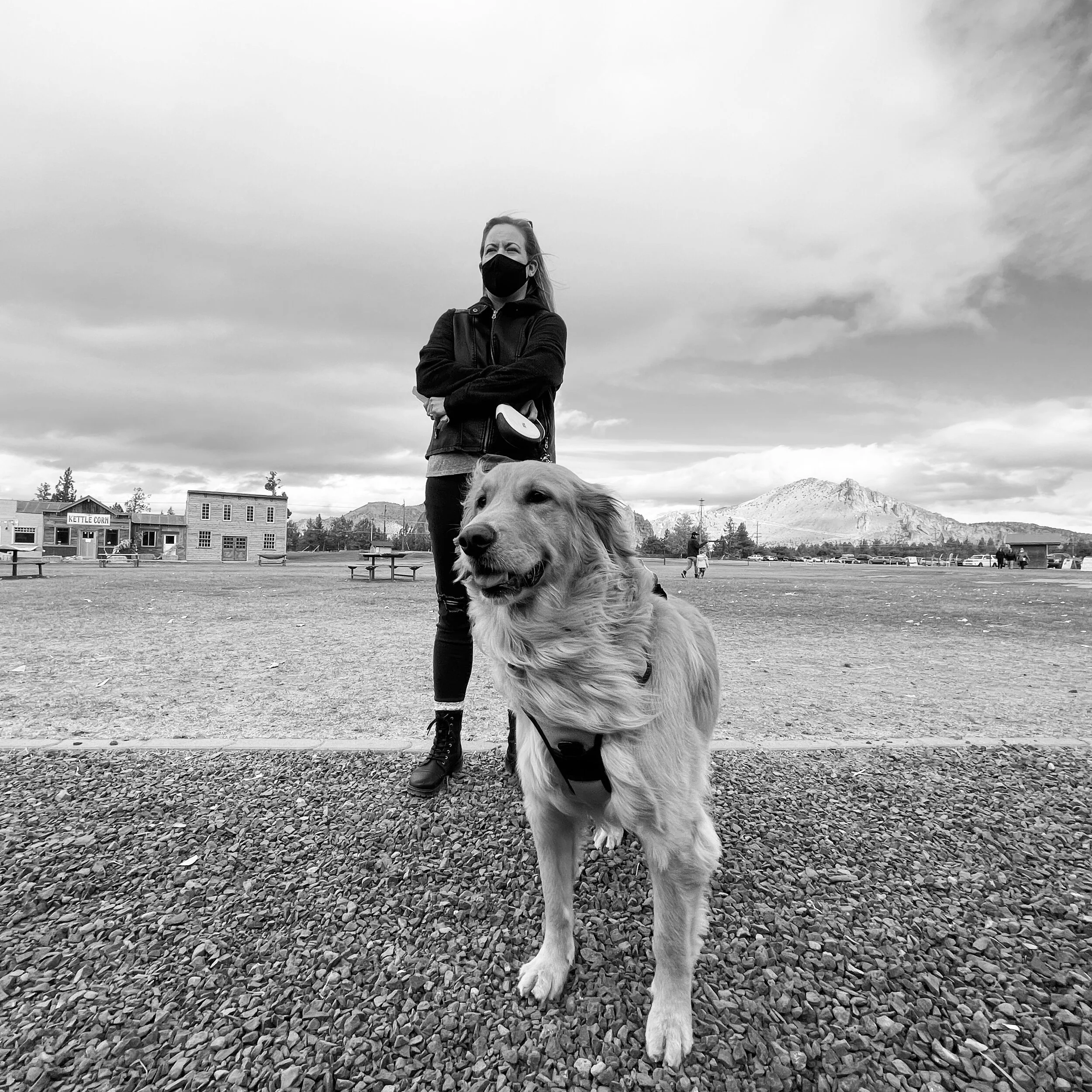 My home—Bend, Oregon, with Hula, who desperately needs to learn how to walk on a leash.